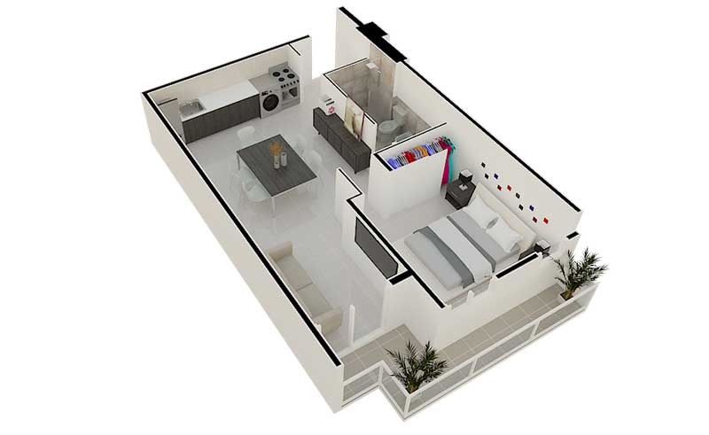 • Departamentos con amplios balcones.